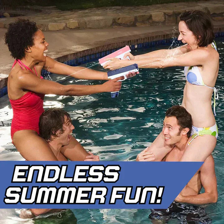 Made with the highest plastic manufacturing standards and ABS materials, this automatic water gun has been safety and durability tested to meet US toy quality standards. It's a step up from traditional water guns and will be the most exciting summer water toy for you and your children!